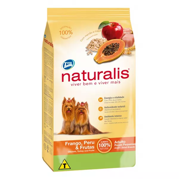 Naturalis Pollo, Pavo Y Frutas Adulto Raza Pequeña es una deliciosa receta hecha con fuentes de proteína excelentes como lo son el pavo y el pollo, en su interior encontraras deliciosos trocitos de frutas secas que a tu mascota le encantarán, son croquetas con el tamaño y la textura ideal para los perros de razas pequeñas, ayuda a la salud intestinal ya que tiene avena, arroz integral y cereales.