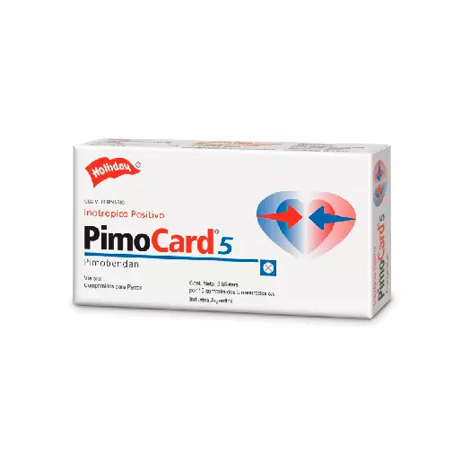 Inotrópico positivo y vasodilatador periférico en comprimidos para perros, en base a Pimobendan. Prolonga el potencial de acción de la célula cardíaca y reduce la tendencia a arritmias por reentradas. Evita la agregación plaquetaria e impide la formación de trombos. Reduce las catecolaminas y por consecuencia el estrés. 20 comprimidos de 5mg