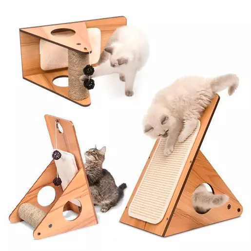 Centro de descubrimiento, de juego y aprendizaje, todo en uno. Puede ser usado en varias posiciones para ofrecer mayor diversidad al gato.